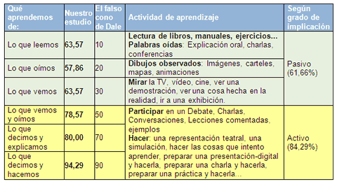Todo esto que estamos viendo se puede resumir en el famoso cono de aprendizaje, cuya conclusión es